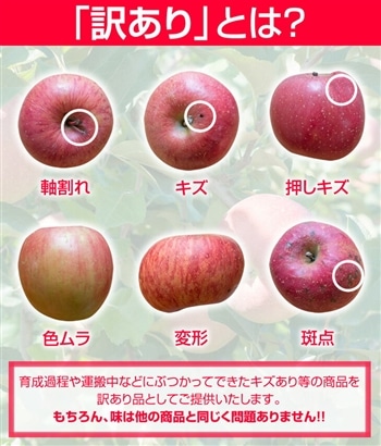押しキズや軸割れ、小玉すぎる、変形や斑点がある実が含まれますが、取り除けば味は通常品と変わりません! 贈答用には向きませんのでご家庭用としてお召し上がりください。