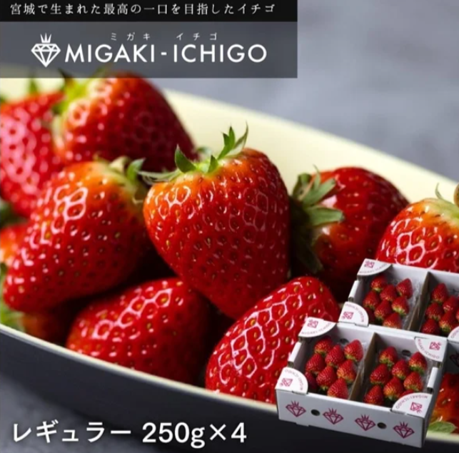 宮城県産ミガキイチゴ・レギュラー250g×4P