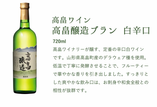 高畠町【高畠ワイン 高畠醸造ブラン 720ml 白/やや辛口】