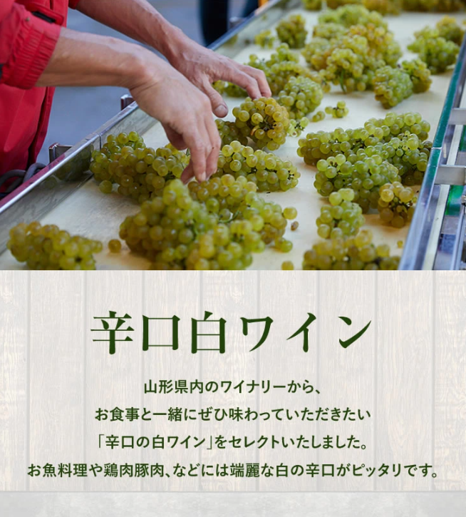山形県内のワイナリーから、お食事と一緒にぜひ味わっていただきたい「辛口の白ワイン」をセレクトいたしました。