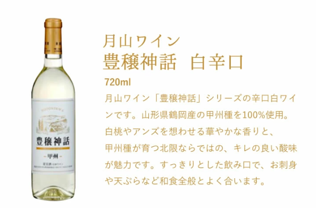 鶴岡市【月山ワイン山ぶどう研究所 豊穣神話甲州 720ml 白/辛口】